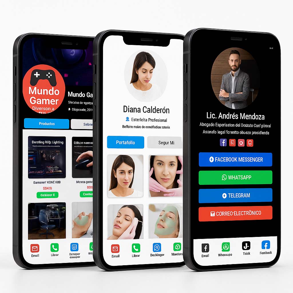Funciona desde cualquier navegador, es compatible con todos los dispositivos y te ayuda a tener presencia profesional de forma rápida, simple y efectiva.