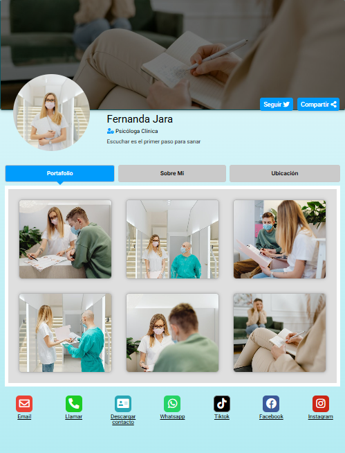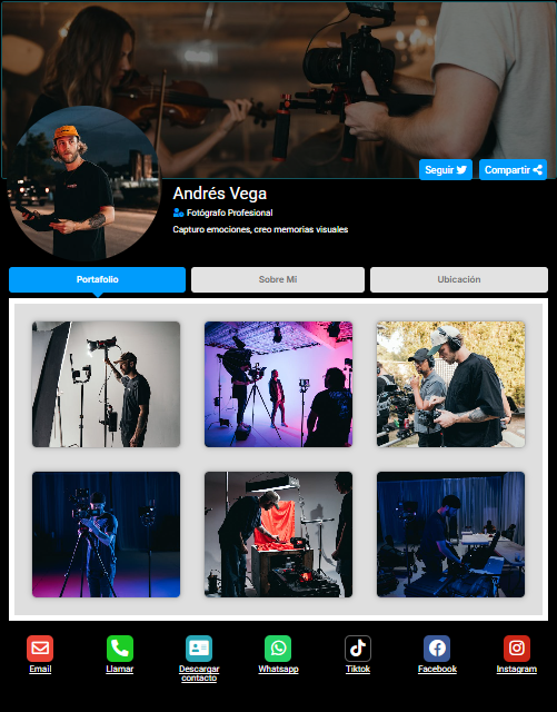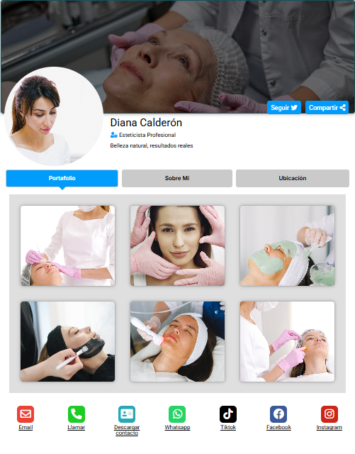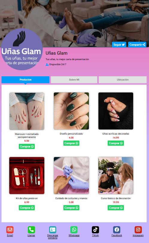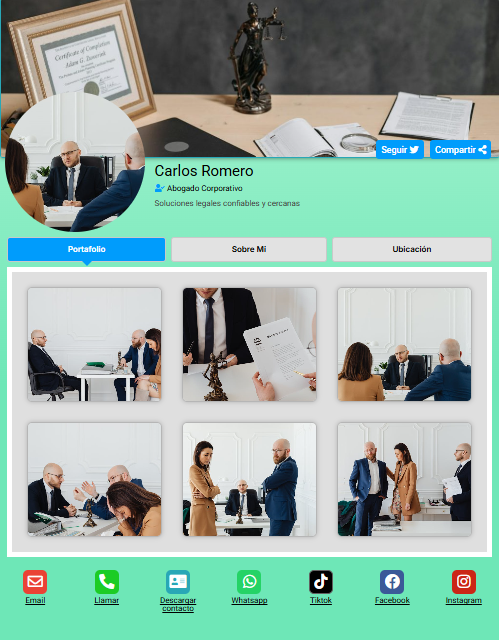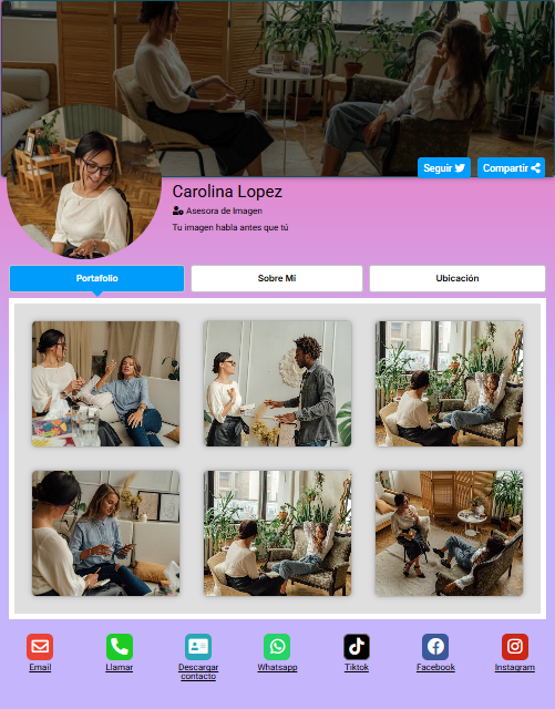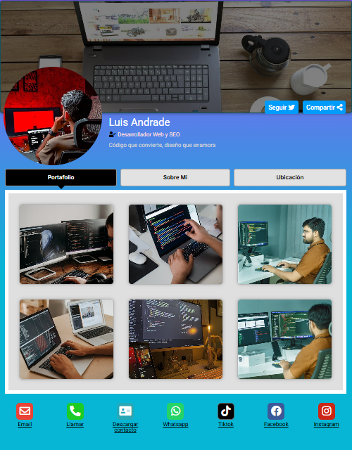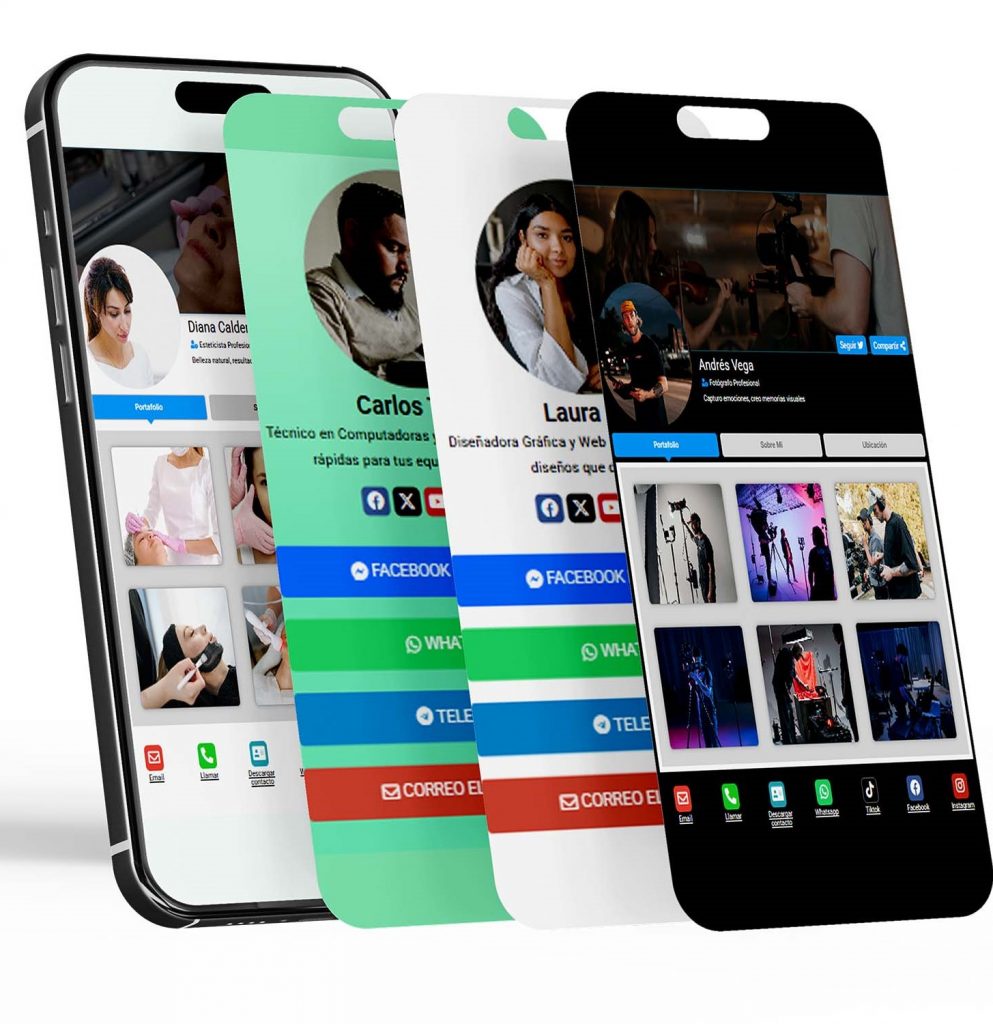 Funciona desde cualquier navegador, es compatible con todos los dispositivos y te ayuda a tener presencia profesional de forma rápida, simple y efectiva.