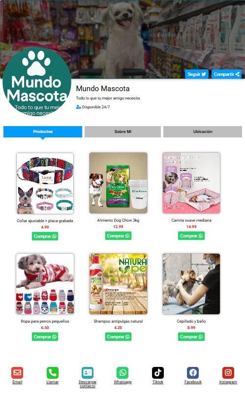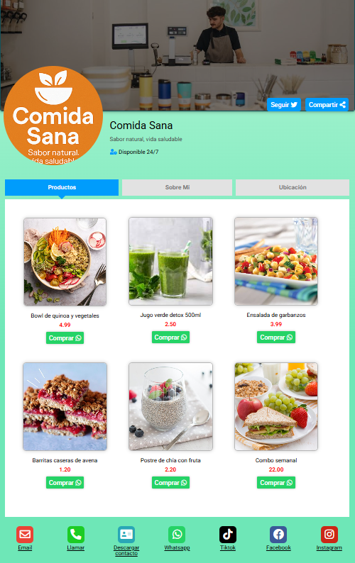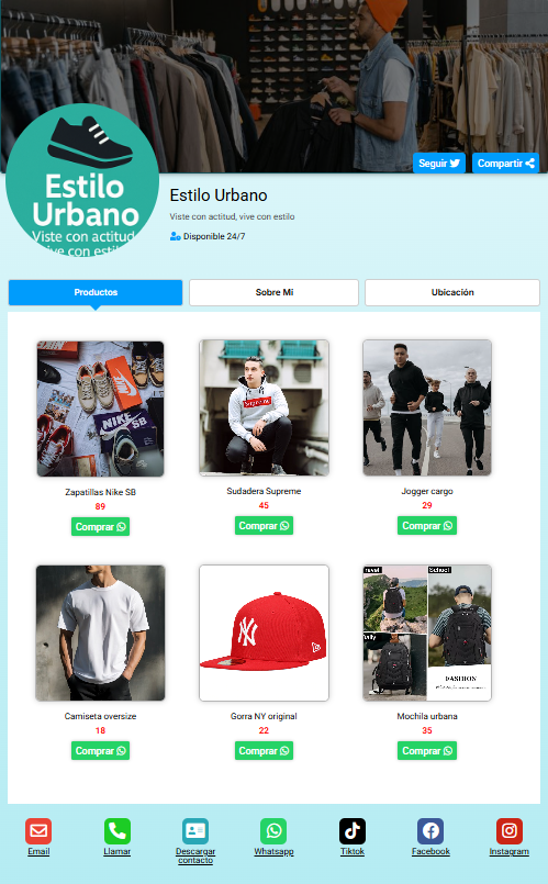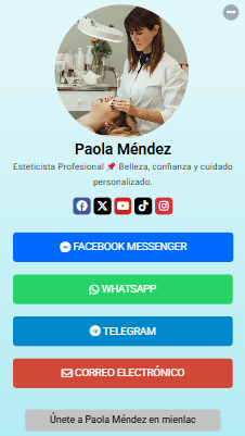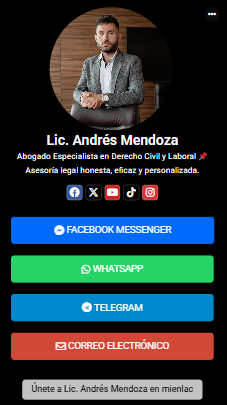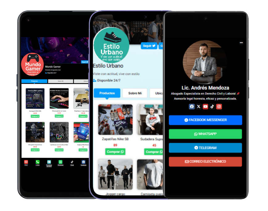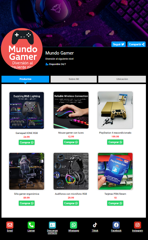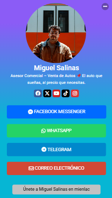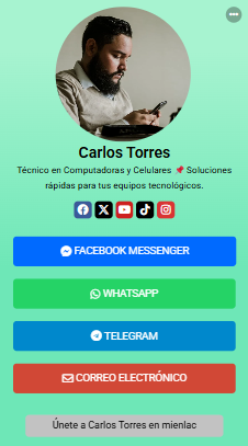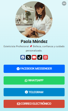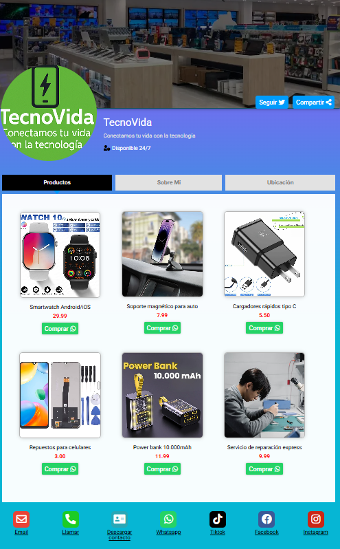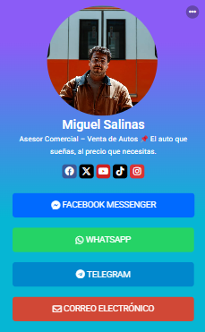 Funciona desde cualquier navegador, es compatible con todos los dispositivos y te ayuda a tener presencia profesional de forma rápida, simple y efectiva.